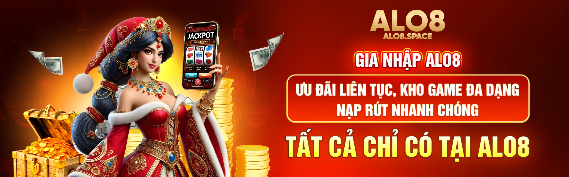 Kho slot tại ALO8 quy tụ hơn 2.000 trò chơi đến từ nhiều nhà phát hành uy tín. Các game đều tích hợp Wild, Scatter, Free Spin và Bonus Round. Khi kích hoạt jackpot lũy tiến, người chơi có cơ hội nhận thưởng lên đến 10.000x mức cược. Trong đó Mega Jackpot có giá trị tích lũy vượt 3,5 tỷ đồng tại một số thời điểm cao điểm.